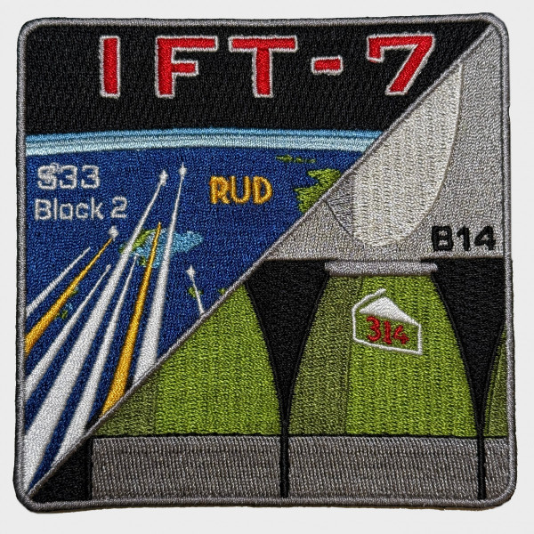 On January 16, 2025, SpaceX completed it's seventh integrated flight test of the Starship Super heavy booster and Starship. Originally, this patch would commemorate other milestones from this flight including the deployment of 10 Starlink simulation satellites and the first reflight of a Raptor engine, #314, which is also the first three digits of pi. However, the failure of the Starship led to a last minute change in the design of the patch. Instead it depicts the dramatic breakup of S33 over Turks & Caicos. I hope in the future I can redo the artwork for the Starlink simulator deployment.