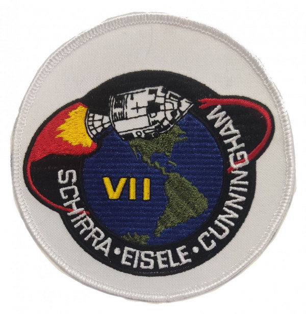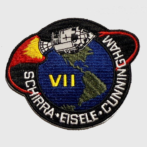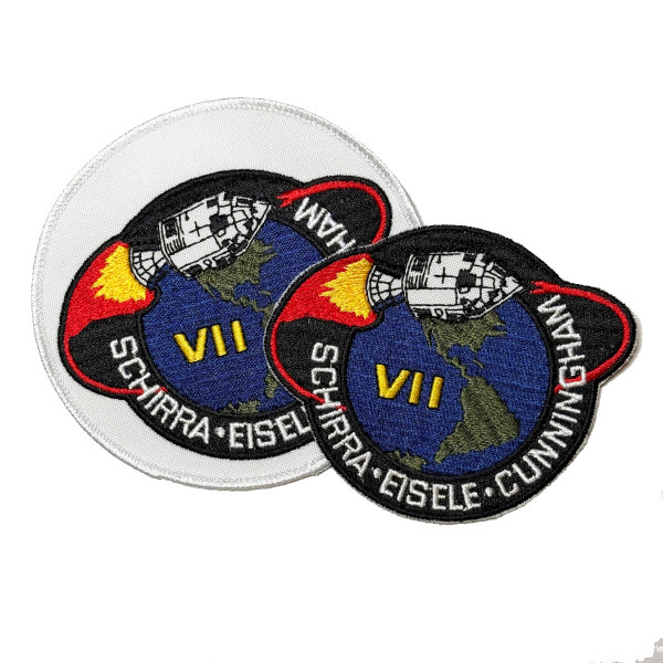 Retrorocket Emblems is excited to finally release their Apollo 7 replica.  I have wanted to replicate this patch for almost 10 years. There were a lot of challenges in producing this patch because the original version of this patch had so many unique production features that are distinct to the long outmoded Schiffli embroidery machine. While modern multi-head embroidery machines produce beautiful work, there was a certain quality and style that was lost when the older machines were replaced. I did my best to re-create some of these artifacts with this Apollo 7 replica. One of the unique attributes of this particular patch is the rather rough nature of all the detail work on the Apollo CSM. Details that even varied across individual patches. Fine details were a distinct challenge in the era when the embroidery machines were programmed using punched paper tape. Another difficult element to reproduce was the classic Schiffli fill style. Modern machines have a very difficult time accurately reproducing it. Having said all that, I hope you enjoy this reproduction as much as I do, and I hope it finds a welcome place in your collection.