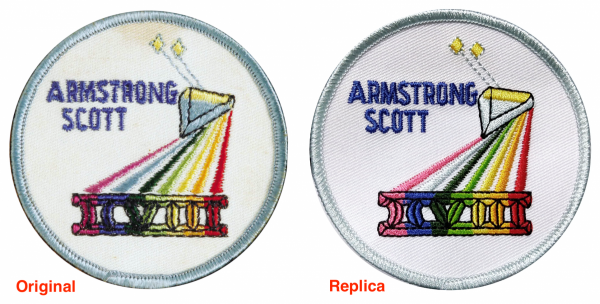 The original name tags, as worn by the crew, were hand-embroidered so each one, between training suits and the flight articles, had minute variations. These are an approximation of those hand-embroidered letters. Each patch comes with one of each name tag, a Retrorocket Emblem's first!
